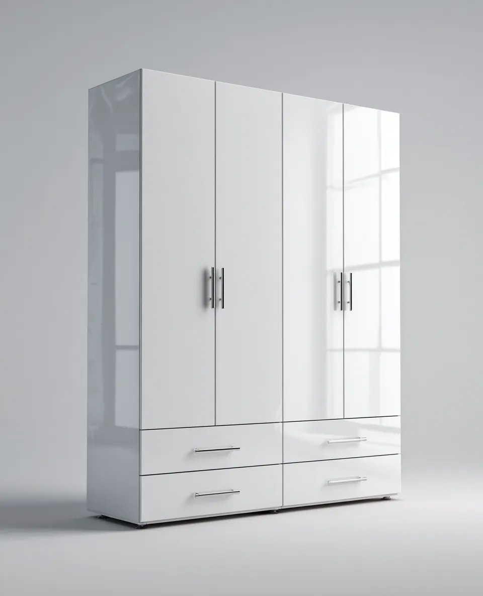 Kleiderschränke mit vier Türen - Holzwerkstoff-Metall - 198x60x210 cm - Weiß - Moderner Stil